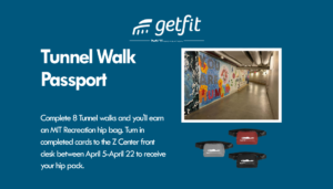 Complete 8 Tunnel walks and you’ll earn an MIT Recreation hip bag. Turn in completed cards to the Z center front desk between April 5-April 22 to receive your hip pack.